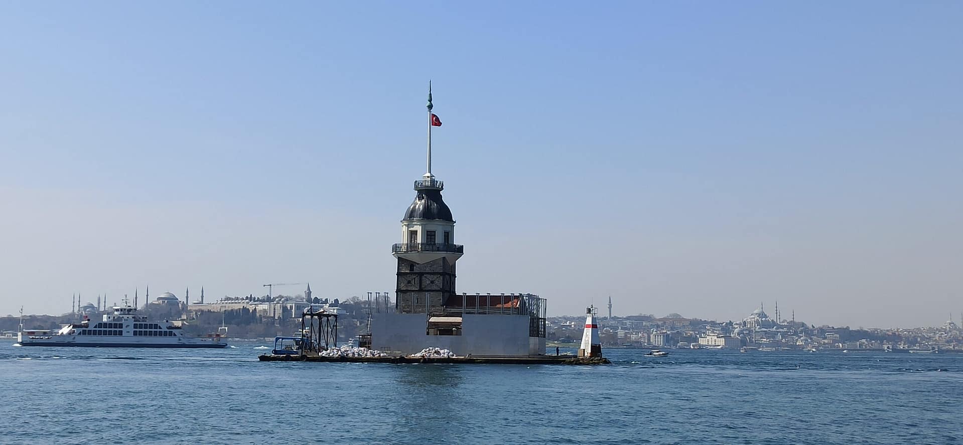 Otra caminata de 25m para llegar a Kiz Kulesi. La torre de la doncella. La isla está cerrada por obras y el bar que había en las gradas no está.