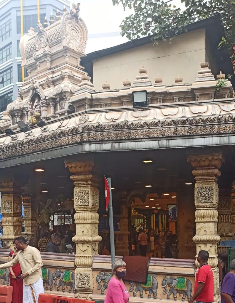Desde hace unos años está decorado con la torre ornamentada «Raja Gopuram» al estilo de los templos de la India del Sur.