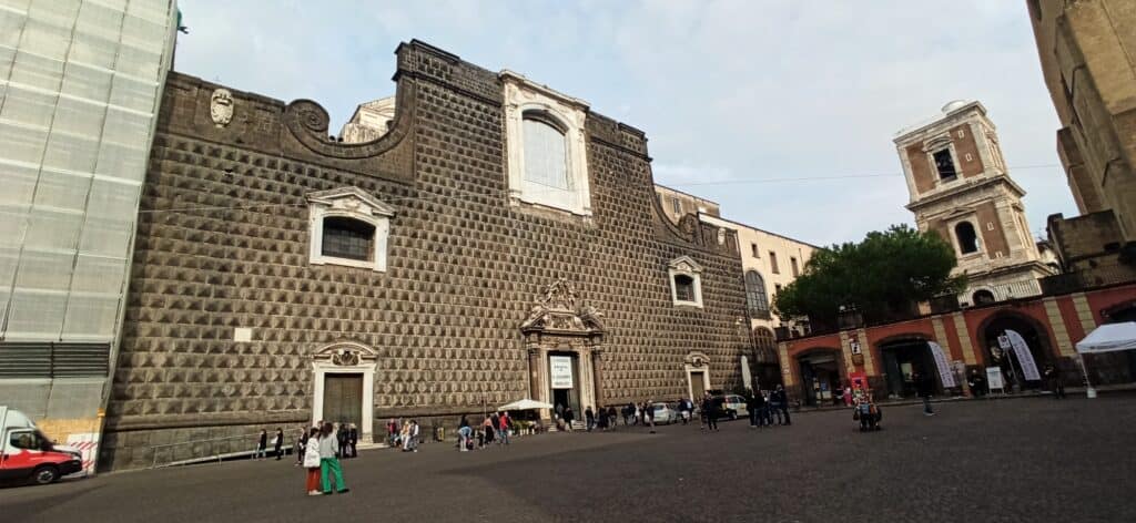 Al salir, a pocos metros nos encontramos con dos de las visitas imprescindibles de la ciudad, la iglesia del Gesù Nuovo, que visitaremos primero, y Santa Chiara.