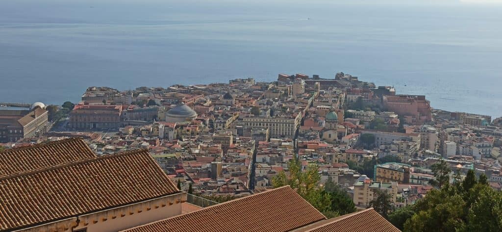 Allí sale el funicular que os subirá a la parte alta de la ciudad y andando un poco, llegaréis al Castillo de San Elmo donde tendréis las mejores vistas de la ciudad y del Vesubio.
