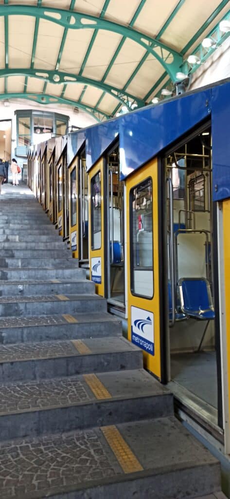Desde hace unos años no funciona por falta de personal y en su lugar has de coger un autobús que te sube a la Av Manzoni. Si no sabéis bien dónde está el mirador, puede que luego os hagáis una tremenda caminata para encontrarlo, la verdad, hay buenas vistas sobre el mar y ya bajando ( si bajáis a pie) tendréis buenas vistas del barrio de Chiaia.