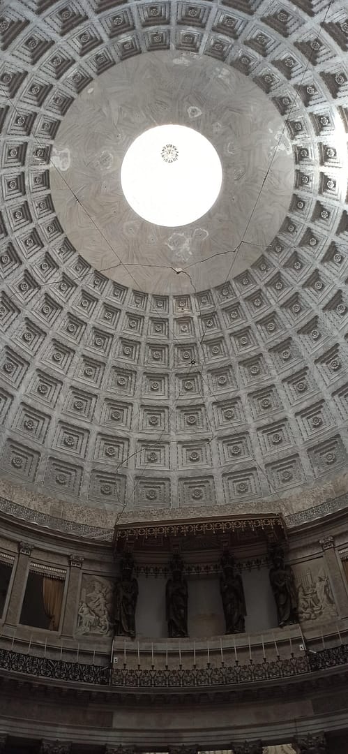Una vez en el interior, es imposible no recordar el Panteón de Roma por su estructura abovedada con el ojo en medio.