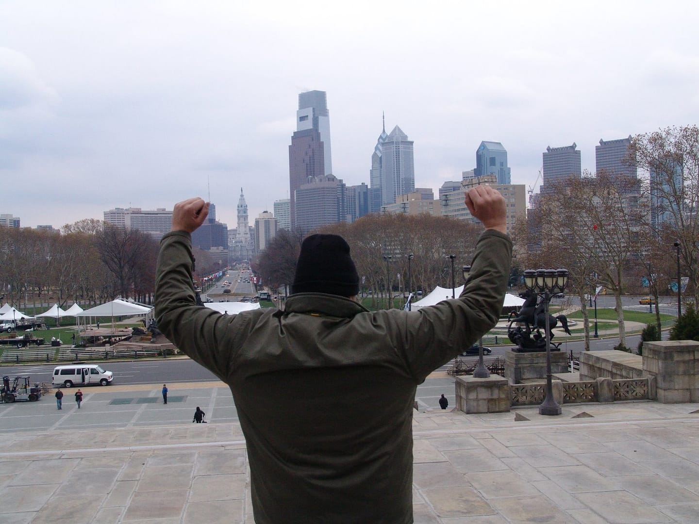 Conduciendo por la 95 intenté averiguar a qué venía ese interés por Filadelfia. La respuesta fue; en serio? Me preguntas porque quiero visitar Filadelfia? Es la ciudad de Rocky Balboa! Tenemos que ver todas las localizaciones de las películas Rocky Balboa .