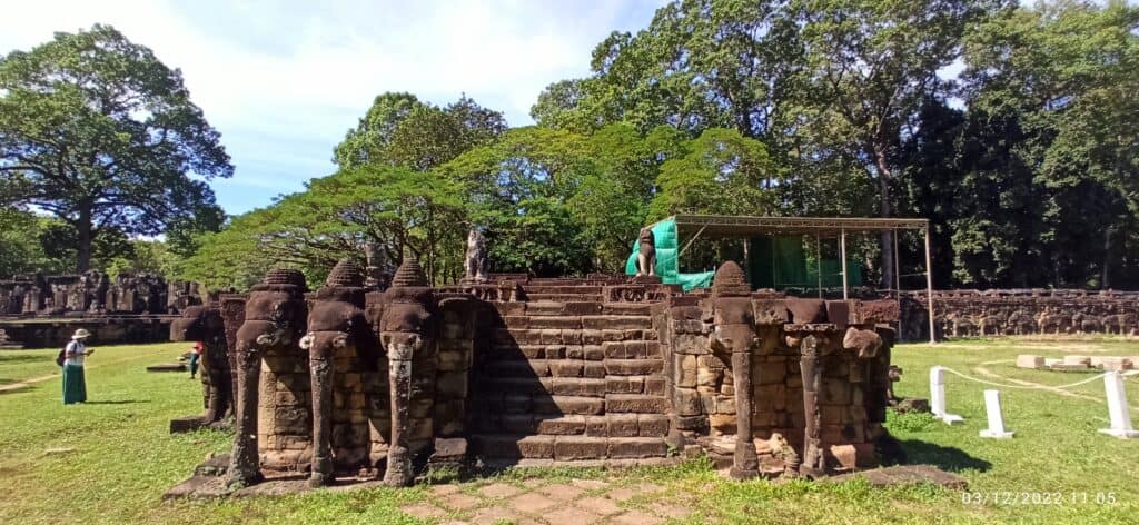 La Terraza de los Elefantes es una gran plataforma ubicada en la antigua ciudad de Angkor. La plataforma tiene alrededor de 300 metros de largo y 2.5 metros de altura, y fue construida a finales del siglo XII por el rey Jayavarman VII.