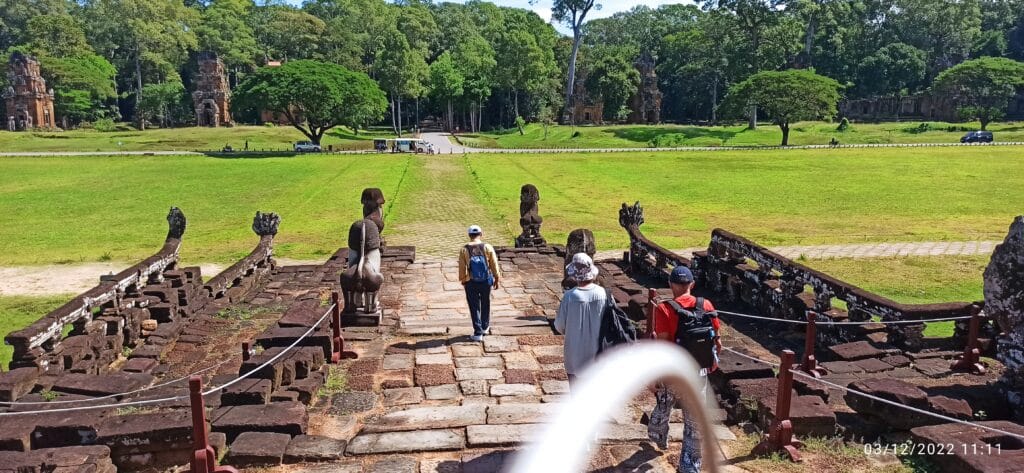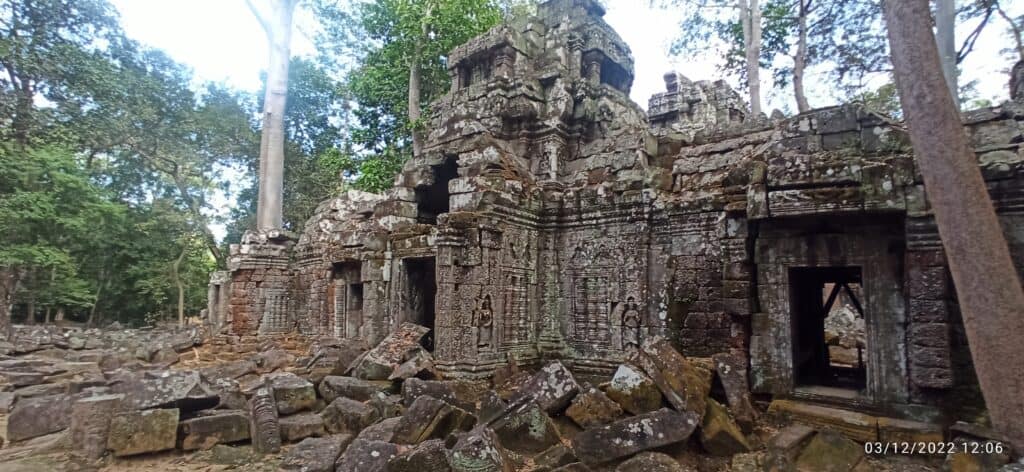 Hoy en día, el templo de Ta Nei es un oasis de paz en medio de la selva. Los visitantes pueden pasear por las ruinas, admirando los intrincados tallados y las obras de piedra que han sobrevivido a lo largo de los siglos. El santuario central del templo incluye una gran estatua tallada de Buda, que aún es venerada por los monjes locales que vienen a ofrecer oraciones y bendiciones.